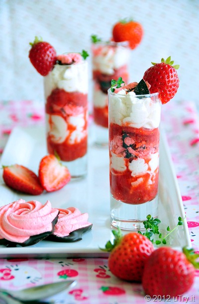 A: This dessert should be served immediately, because the meringue will get soft if it's soaking up the moisture from the cream and strawberries.