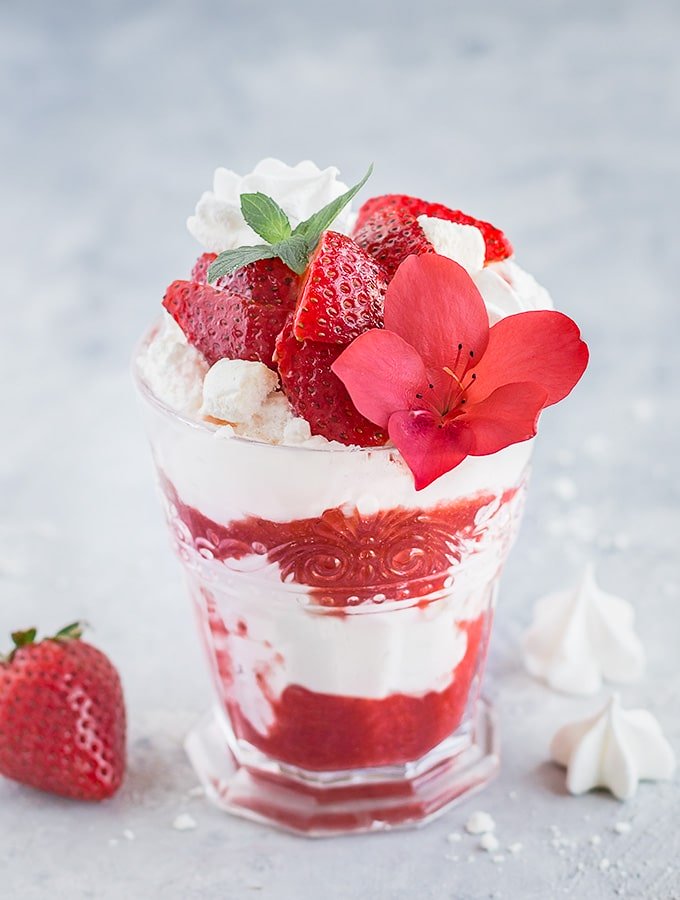 A: Creamy, white and soft as snow; the meringues are an important part of an Eton mess and add an airy touch to this tasty dessert.
