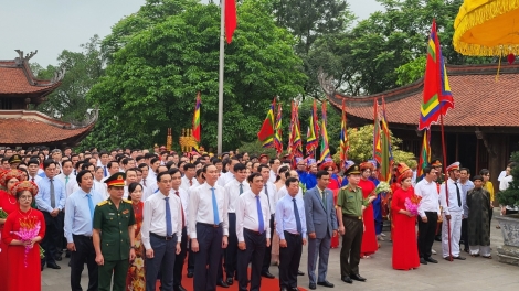 (VOVWORLD) -Ce dimanche 14 avril, au nom des Vietnamiens au pays et à l’étranger, les autorités et les habitants de la province septentrionale de Phu Tho ont effectué une cérémonie de culte en l’honneur de Lac Long Quân et Au Co, les ancêtres légendaires du peuple vietnamien.