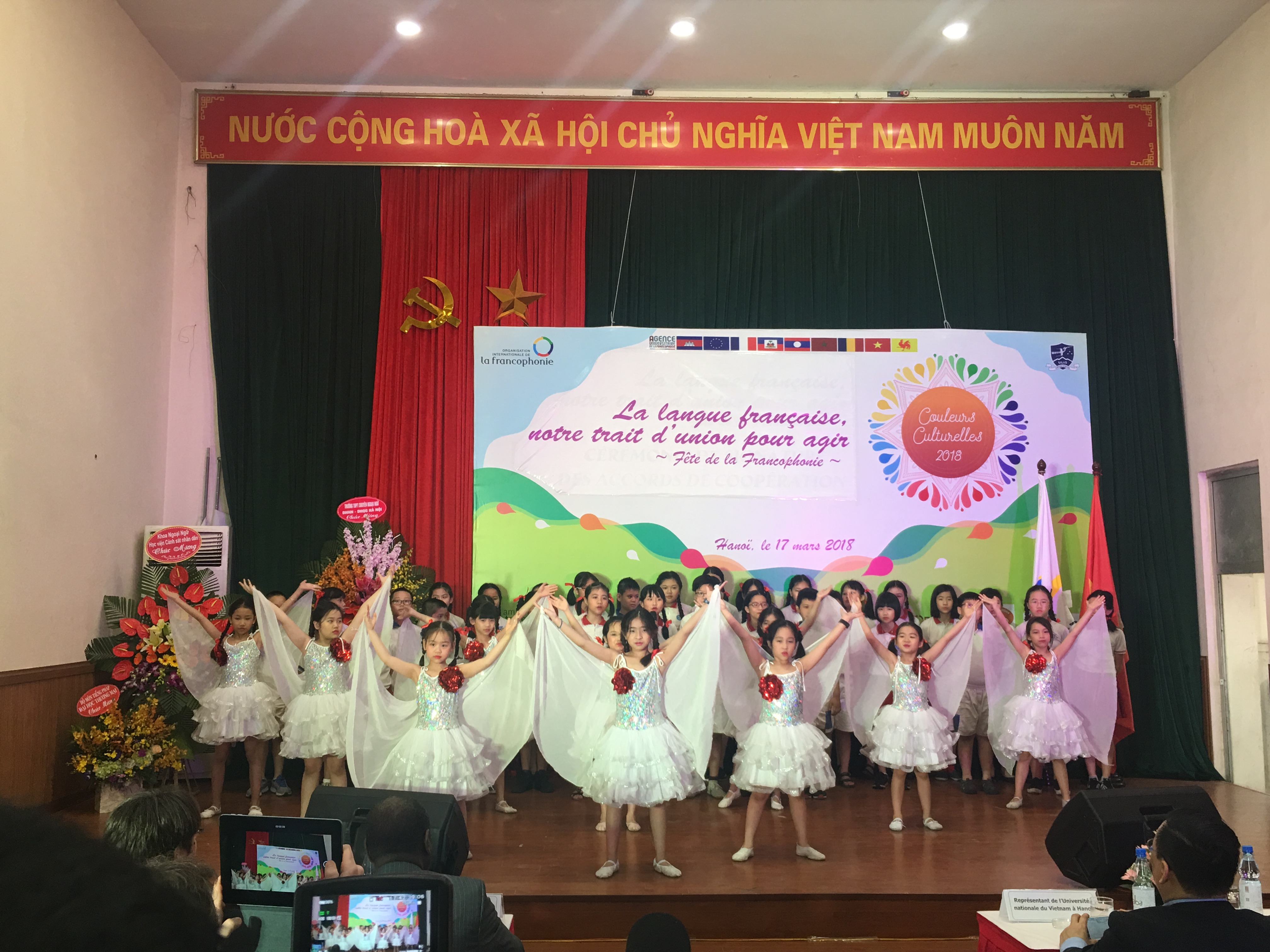 L'événement a vu la présence de Bertrand Lortholary, ambassadeur de France au Vietnam, d’Adama Ouane, directeur de l’OIF, de Jehanne Roccas, ambassadrice de Belgique au Vietnam mais aussi présidente du GADIF, de Dinh Toan Thang, correspondant national auprès de l'OIF. A ceux-là, s’ajoutaient de nombreux représentants de l’université, de différentes ambassades et organisations internationales.