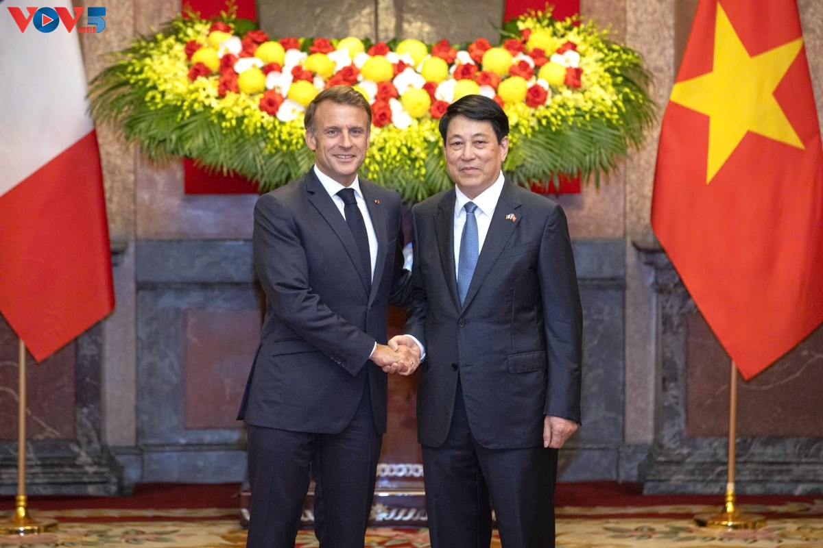 Le président vietnamien Luong Cuong et le président français Emmanuel Macron. Photo: Việt Cường/VOV |