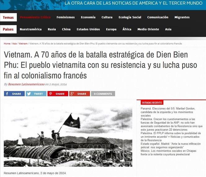 Par ailleurs, le journal argentin Resumen Latinoamericano a récemment publié des articles et des images en hommage à la victoire de Diên Biên Phu. Un article intitulé “Leçons de la victoire de Diên Biên Phu dans la lutte anticoloniale”, paru le 3 mai, met en exergue la portée mondiale de cette victoire, qui a été une source de fierté pour le peuple vietnamien et a fortement encouragé les mouvements indépendantistes coloniaux à travers le monde.