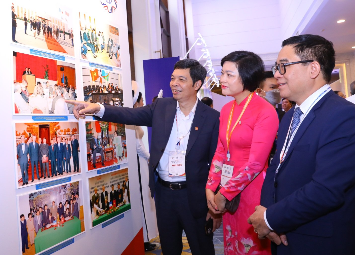 Quelques 120 photos sont exposées dans un ordre chronologique, présentant des activités de coopération entre les localités vietnamiennes et françaises ainsi que les jalons des relations entre les deux pays. On peut notamment voir ou revoir la photo du président vietnamien Lê Duc Anh et de son homologue français François Mitterrand au temple de la Littérature de Hanoï, prise en février 1993 à l’occasion de la visite officielle au Vietnam du président français, qui aura été le premier chef d’État occidental à se rendre dans notre pays depuis 1975. On peut également voir des photos des visites officielles en France du Premier ministre Vo Van Kiêt en 1993, du président Trân Duc Luong en 2002, des secrétaires généraux du Parti communiste vietnamien Nông Duc Manh en 2005 et Nguyên Phu Trong en 2018.