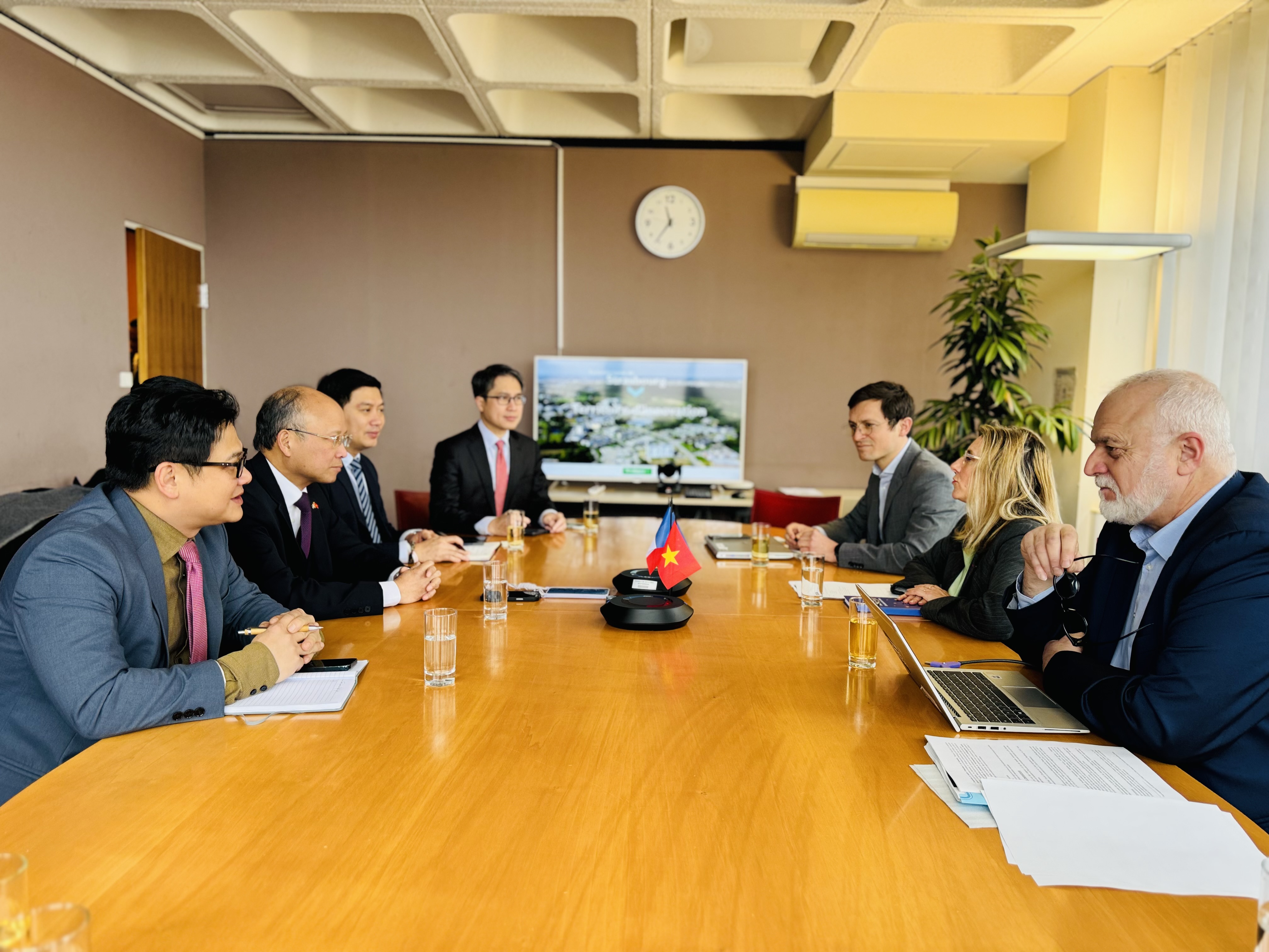 L'ambassadeur Dinh Toàn Thang en réunion avec Anne-Marie Jean, vice-présidente de la Métropole de Strasbourg. Photo: Anh Tuấn - VOV France