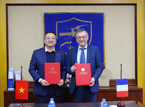 Les représentants de l’Université Paul-Valéry Montpellier 3 et de l’Université de langues et d’études internationales de Hanoï (ULIS) signent une convention de coopération (photo: ULIS) |