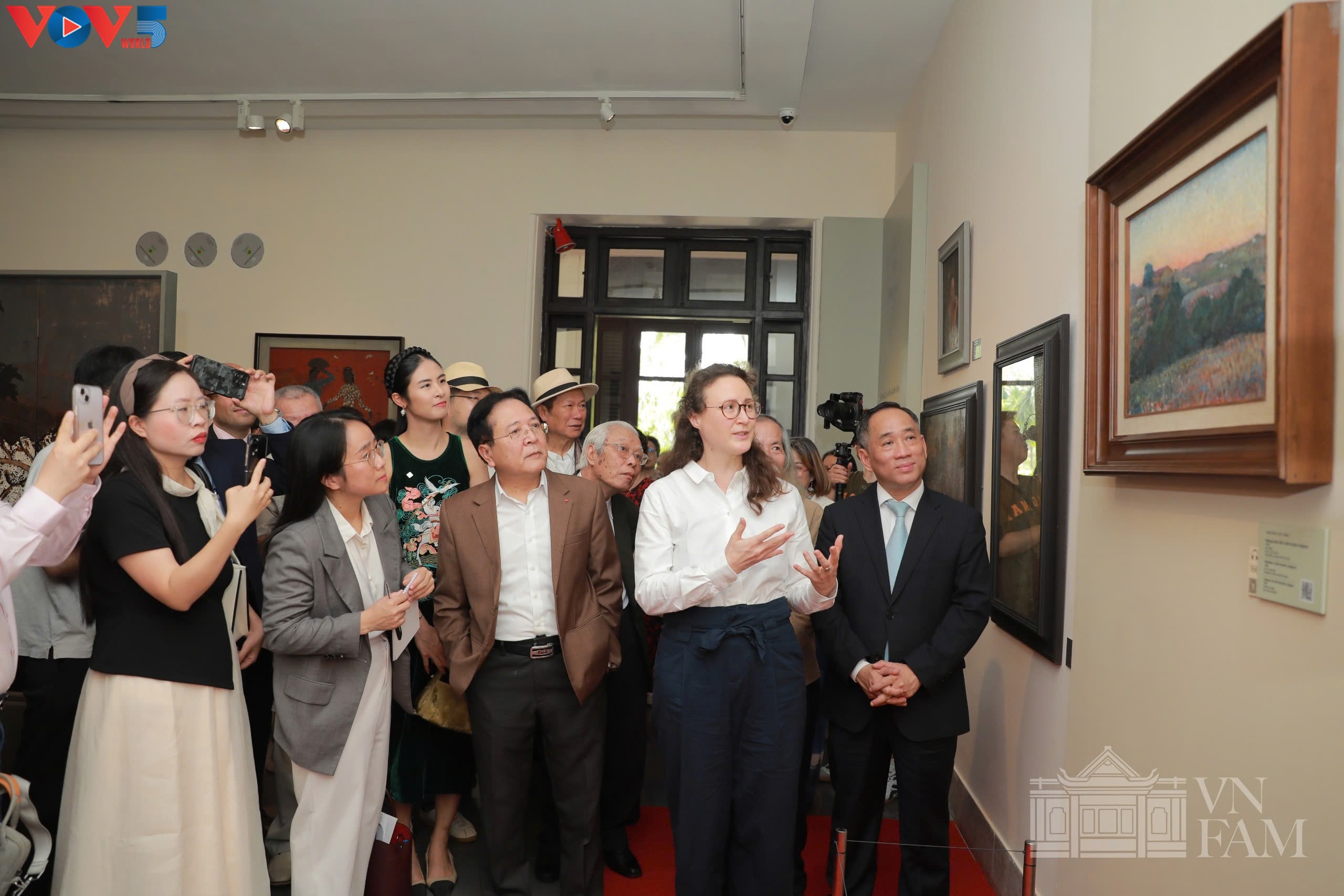 Amandine Dabat, descendante de 5e génération du monarque, présente la peinture. Photo: Ngoc Anh/VOV5 |