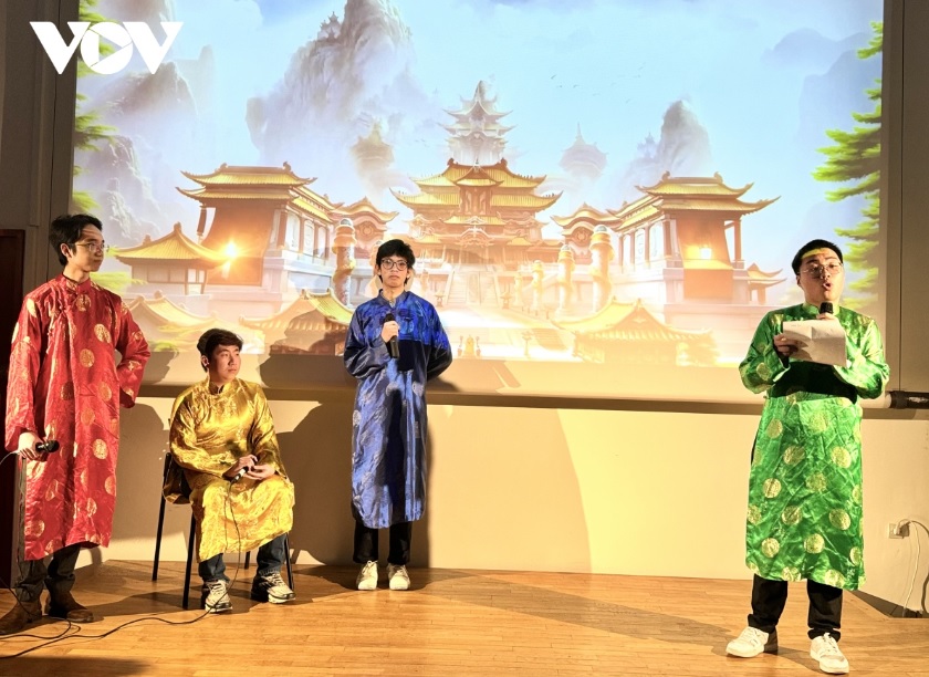 Une comédie jouée par des étudiants lors de la célébration du Nouvel An lunaire à Grenoble. Photo: Anh Tuân/ VOV