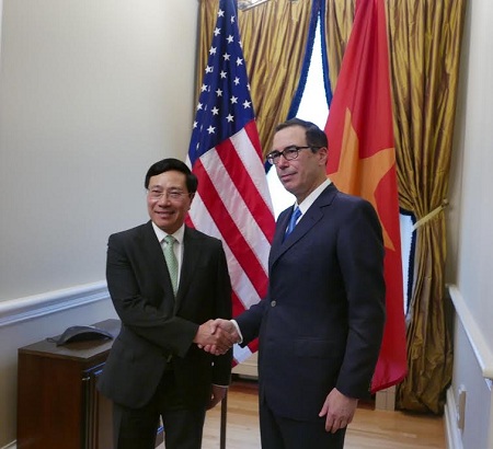 (VOVworld) - Le vice-Premier et ministre des Affaires étrangères Pham Binh Minh a entamé jeudi une visite de deux jours aux Etats-Unis. Il s’est entretenu avec le secrétaire d’Etat américain Rex Tillerson et le conseiller à la sécurité nationale Herbert Raymond McMaster, avant de rencontrer le secrétaire au Trésor Steven Mnuchin.