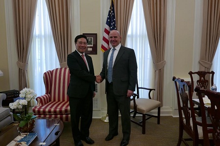 ![]() Le conseiller à la sécurité nationale Mc Master reçoit le chef de la diplomatie vietnamienne Pham Binh Minh. |