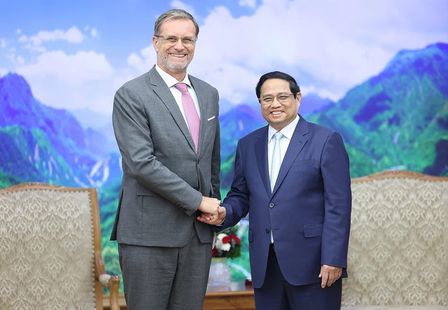 Le Premier ministre Pham Minh Chinh (droite) et l’ambassadeur de France au Vietnam Olivier Brochet. Photo: AVI |