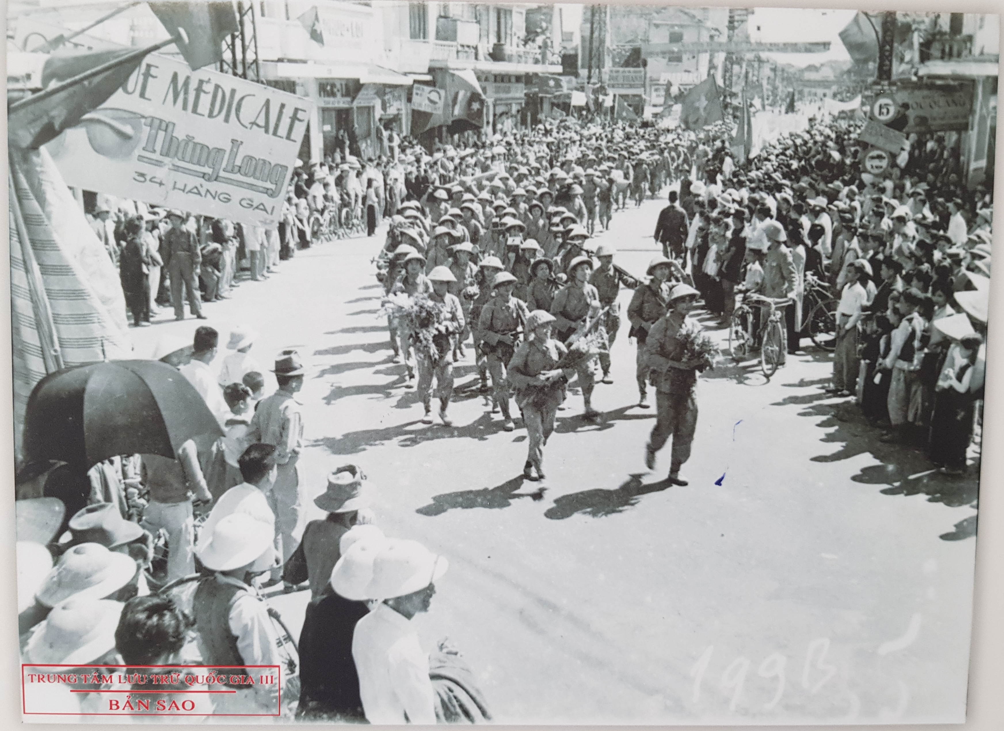 Un régiment investit la capitale par la rue Hàng Gai, le 10 octobre 1954. Photo: Ngoc Anh |