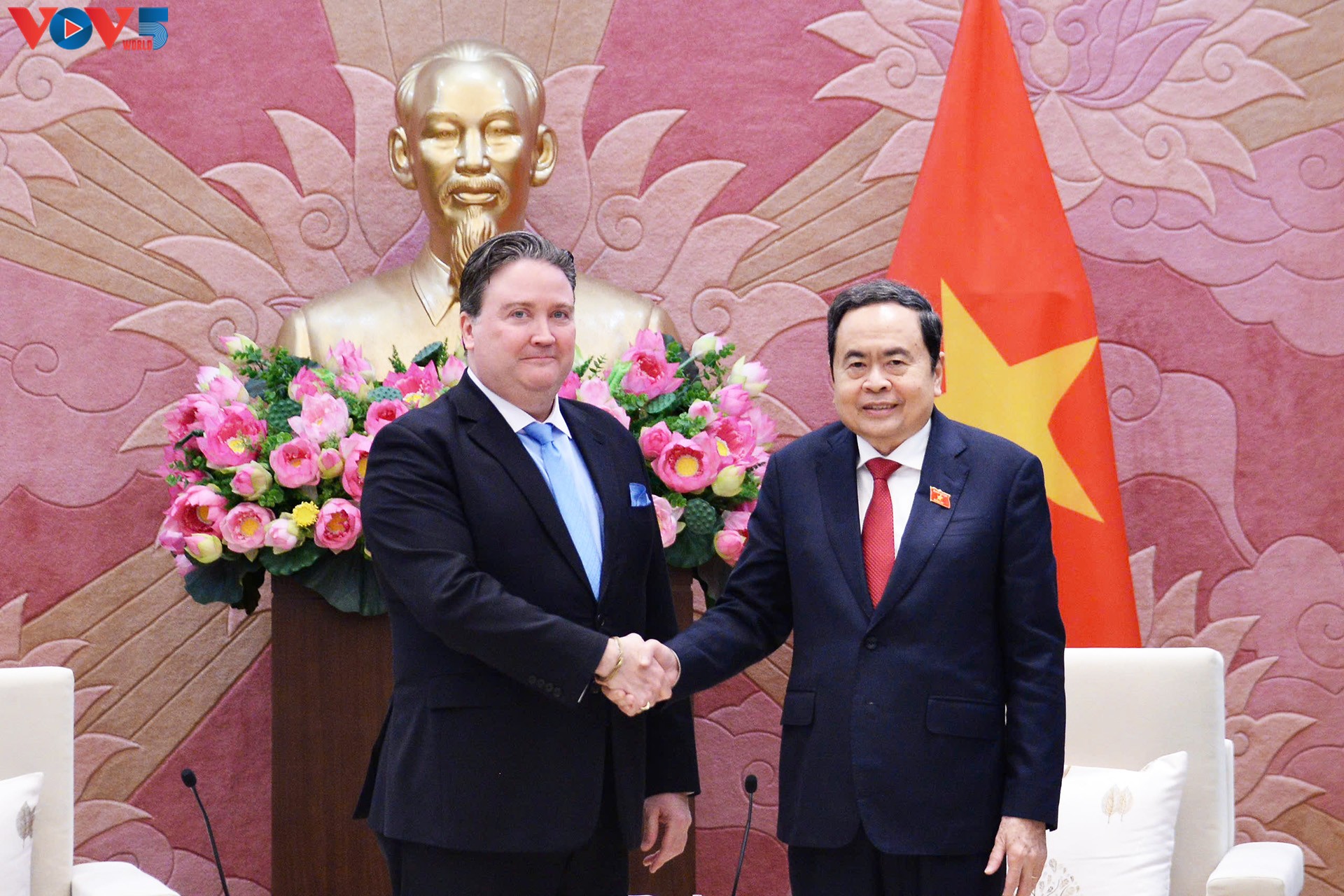 Le président de l’Assemblée nationale vietnamienne, Trân Thanh Mân, et l’ambassadeur des États-Unis, Marc Knapper. Photo: Lê Tuyêt/VOV |