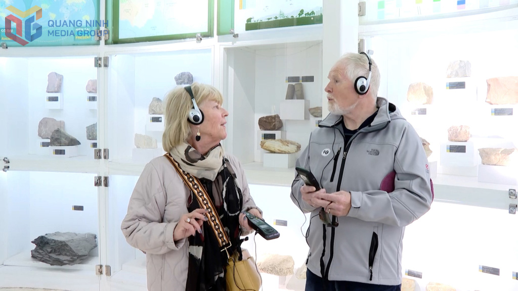 Des touristes internationaux expérimentent l’audioguide automatisé du musée de Quang Ninh. Photo: baoquangninh.vn
