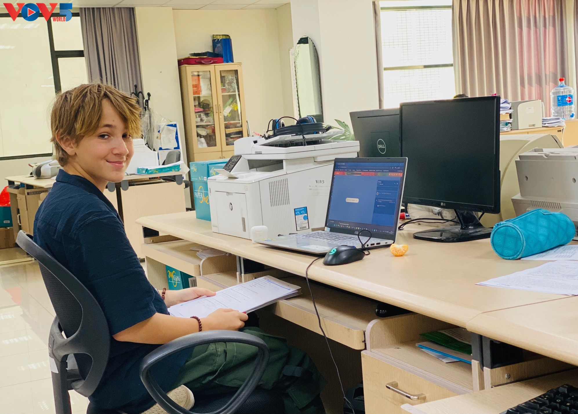Eliot Montagnié-Zoccola au service français de VOV5 (photo: Thuy Van) |