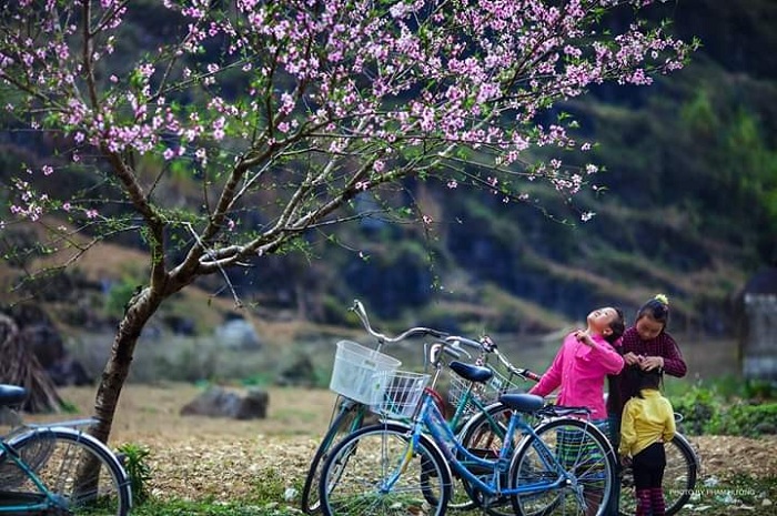 C'est dans la province de Hà Giang, plus précisément sur le plateau calcaire de Dông Van, que les cerisiers fleurissent le plus tard au Vietnam, généralement en février, voire parfois en mars. Alors qu'en fin d'année, d'octobre à décembre, Hà Giang est connu comme le royaume des fleurs de sarrasin, au printemps, il se transforme en un véritable paradis des cerisiers en fleurs. En effet, on peut observer ces magnifiques fleurs un peu partout, que ce soit dans les jardins des maisons ou dans les montagnes environnantes.