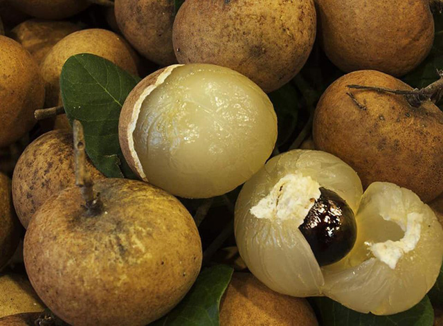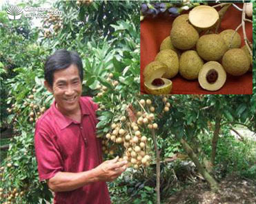 L’une d’entre elles est le Nhan lông. Son fruit est plus grand, de couleur jaune brun, avec une chair blanche et épaisse et un tout petit noyau noir.