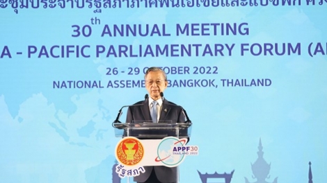 (VOVWORLD) - La 30e réunion annuelle du Forum parlementaire Asie-Pacifique (APPF-30) a été officiellement ouverte mercredi à Bangkok (Thaïlande), sous l’égide du président de l'Assemblée nationale de Thaïlande Chuan Leekpai.