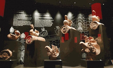 Mais le musée présente aussi deux mosaïques contemporaines constituées de morceaux de briques et de tuiles brisées que les archéologues ont trouvés sur place. Ces mosaïques ont été créées par une certaine Bui Thu Trang. L’une s’appelle «Le dragon s’envole», faisant référence au dragon du rêve du roi Ly Cong Uan, celui-là même qui l’a incité à transférer la capitale de Hoa Lu à Thang Long, mais aussi au motif du dragon qui est omniprésent dans l’architecture des Ly. La deuxième mosaïque s’appelle «Thang Long à l’aube», valorisant le motif décoratif de la feuille du figuier des pagodes et les tuiles en forme de tube décorées de lotus qu’on trouve souvent sur le toit des palais des Ly.
