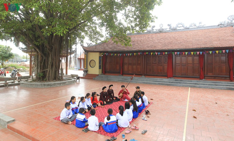 Tous les ans, à l’occasion de l’anniversaire des deux créateurs du ca trù, le prince Dinh Du et la princesse Man Duong Hoa, une cérémonie a lieu dans la cour de la maison communale avec tous les rites traditionnels et évidemment un concert de ca trù. Mais ce chant résonne également lors d’activités communautaires et à l’école. Trinh Thi Hoai Nam, enseignante à l’école primaire Hoa Binh 1, est aussi chanteuse et professeure de ca trù à ses heures perdues.