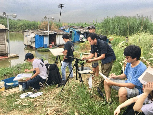 Thi Thanh Thuy, enseignante à l’Ecole supérieure d’architecture de Hanoï et trois autres personnes. Il est la filiale hanoienne d’Urban Sketchers Vietnam, qui fait partie du réseau mondial des dessinateurs urbains. Ouvert à tous les passionnés des beaux-arts, le groupe compte aujourd’hui des milliers de membres, de tous âges, tous horizons, dont des étrangers, nous dit Trân Thi Thanh Thuy.