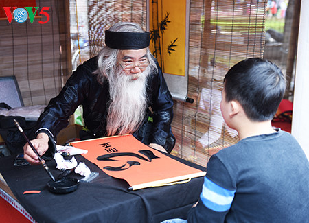 «Chaque année, à l’occasion du Nouvel an, d’autres calligraphes et moi-même aimons à venir ici pour faire revivre cette vieille tradition culturelle», nous explique Chu Van Thinh. «Qui ne veut pas une année heureuse et prospère ? Certains veulent le mot ‘longévité’, d’autres ‘bonheur’. Certains parents nous demandent d’écrire ‘studiosité’pour leurs enfants ou ‘facilité’, lorsqu’il s’agit d’hommes d’affaires désireux de se lancer dans une nouvelle entreprise. Si les calligraphies sont aussi majestueuses qu’un phénix dansant, un dragon volant, c’est parce que le calligraphe y met toute son âme.»