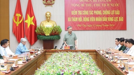 (VOVWORLD) - Le secrétaire général du Parti communiste vietnamien et président de la République, Tô Lâm, a travaillé ce jeudi après-midi à Viêt Tri avec les responsables de la province de Phu Tho sur la gestion des dégâts causés par le typhon Yagi dans la région.