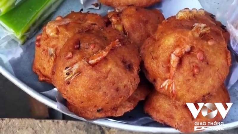 L’une des spécialités du marché est le bánh giá, une sorte de beignet de porc et de crevette, que nous présente Phan Thi Kim Phuong, qui en vend.