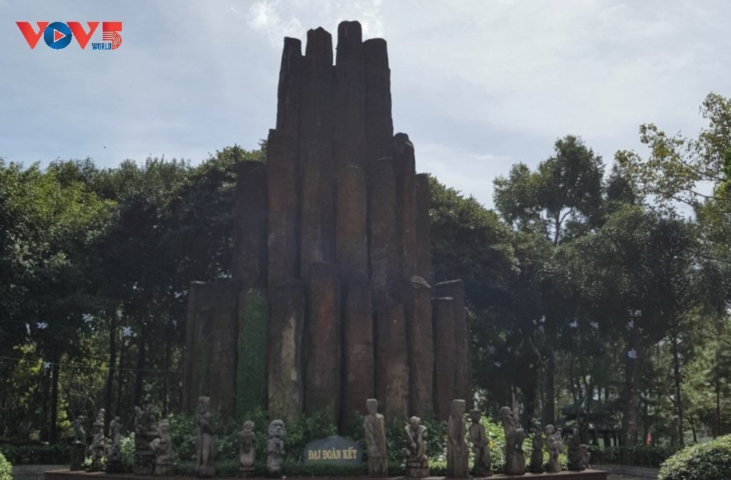 Le relief constitué de 54 colonnes de basalte symbolisant les 54 ethnies vietnamiennes. Photo: Ngoc Anh/VOV5 |