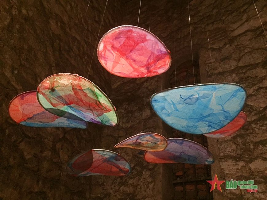 À l'intérieur de chaque compartiment, une jarre datant du 19e siècle génère un effet sonore captivant au contact de l'eau. Les visiteurs sont guidés à travers un chemin en planches de bois recyclé, éclairé par des LED, qui les conduit à l'intérieur du monument. Conçu par le peintre Nguyên Duc Phuong et ses collègues, ce "chemin de lumière" et l'installation dans son ensemble offrent une expérience sensorielle unique, fusionnant l'histoire de la jarre ancienne avec la modernité de l'éclairage LED.