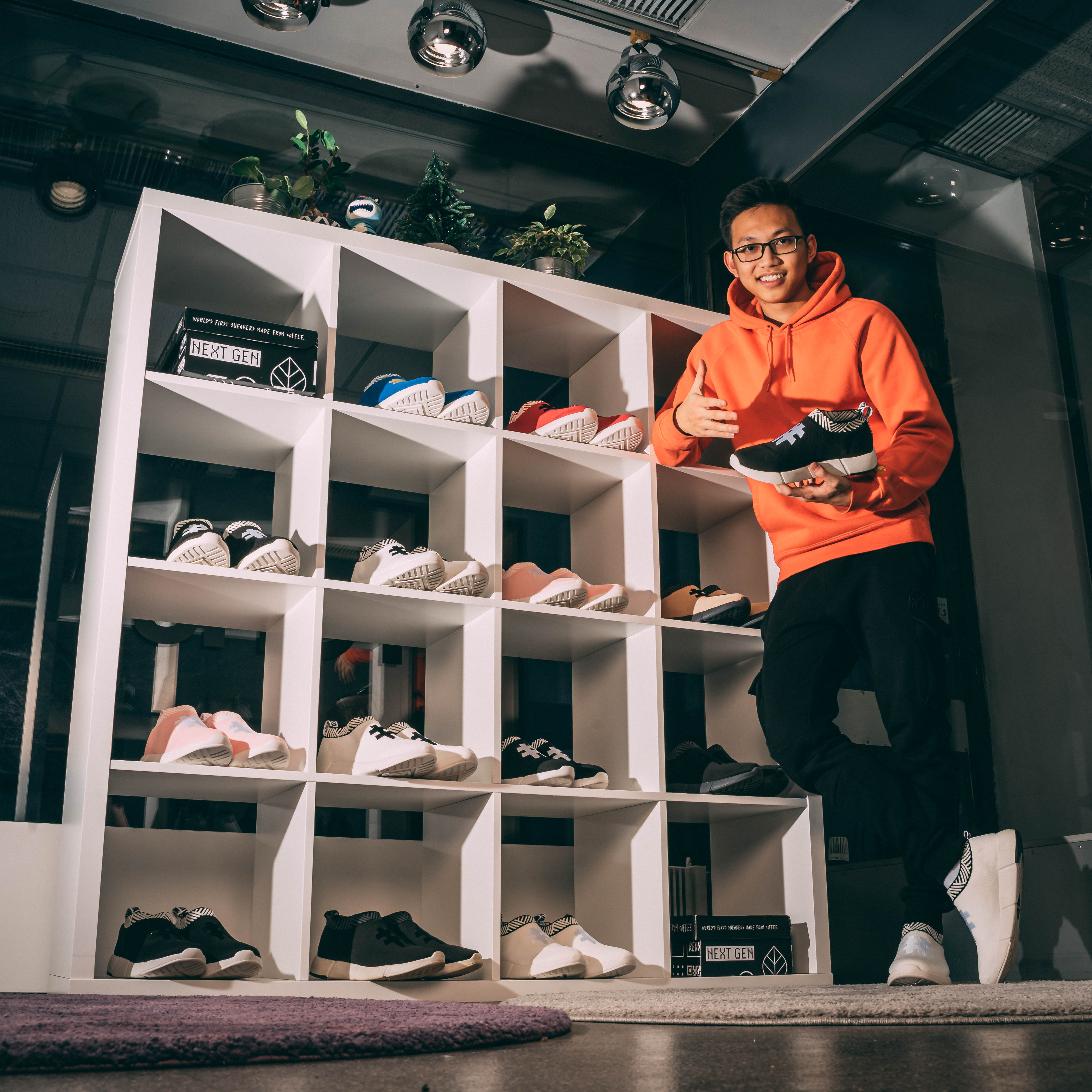 «En 2016, Son a travaillé pour ma première société “Factory Finder” en tant que développeur web», se souvient Khanh. «C’est une plate-forme qui aide à mettre en relations des designers européens et des usines vietnamiennes et chinoises, dont la production est respecteuse de l’environnement. L’entreprise ne marchait pas et Son est parti travailler pour Zalando, la plus grande boutique de mode européenne en ligne. Un jour, j’ai retrouvé Son et je lui ai proposé une nouvelle idée: fabriquer des sneakers. Son a accepté tout de suite mon invitation car nous sommes des “sneakershead”, des personnes qui sont passionnées par les baskets. Au début, nous voulions nous diriger vers le coton recyclé, mais très vite, nous nous sommes aperçu que ce n’était pas une solution durable. C’est alors que nous avons fait une découverte pour le moins originale en apprenant qu’un fil extrêmement résistant pouvait être fabriqué à base de marc de café, créant ainsi un matériau aux propriétés intéressantes.»
