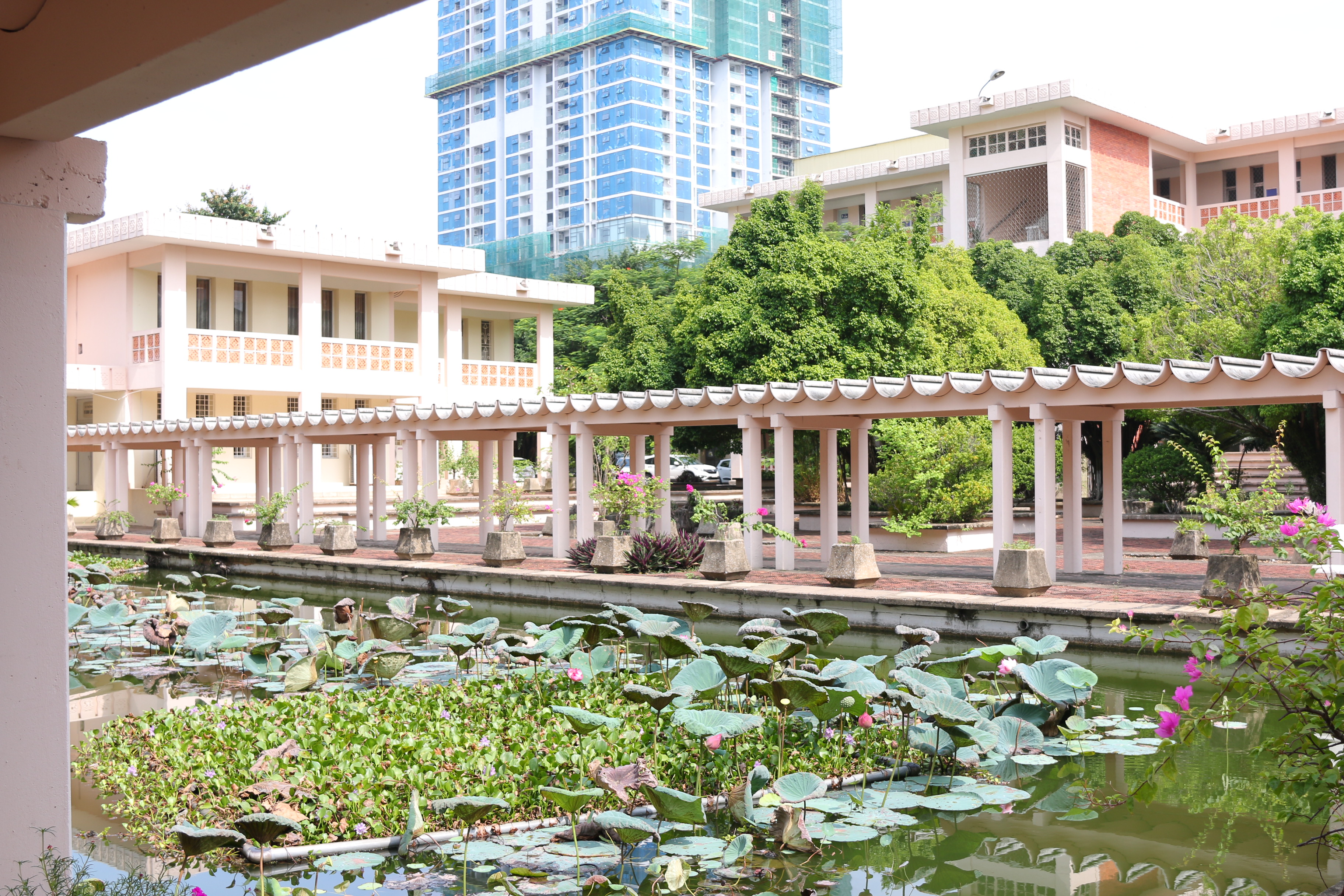 Fruit d’une étroite coordination entre le ministère vietnamien de l’Éducation et de la Formation, celui des Affaires étrangères et le ministère français de l’Éducation et de la Formation, ces locaux ont été inaugurés le 19 avril 1984, constituant un complexe unique en son genre, aéré et pratique, comprenant des bâtiments fonctionnels reliés par de longues passerelles couvertes, entrecoupées d'arbres et de lacs.