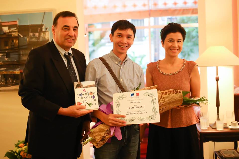 Le Viet Khanh avec les finalistes du concours "France, je t'aime". Photos: Ngo Tran Hai An