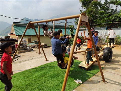 Les enfants s’amusent sur le terrain de jeux construit dans le cadre du projet "Des livres pour les enfants" (photo: Tung Duong/CVN)