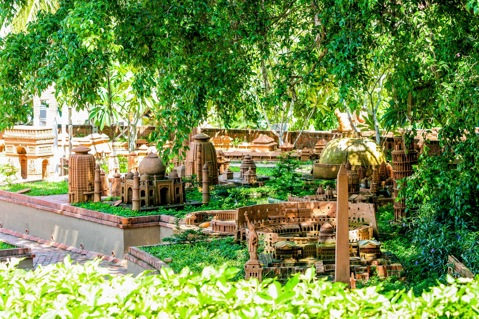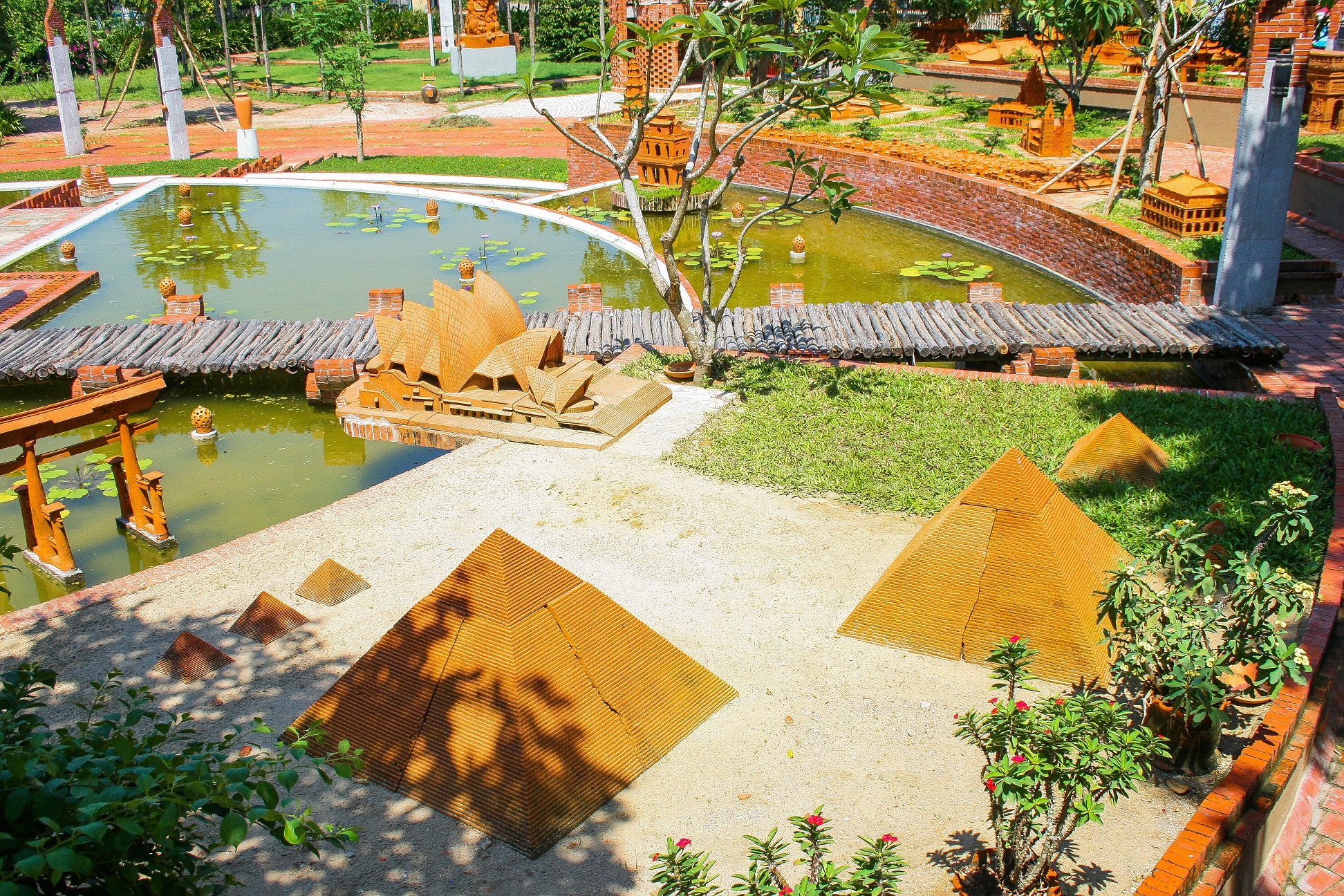 Notre-Dame de Paris, la tour de Pise (Italie), Big Ben (Londres), l’Opéra de Sydney, la Maison Blanche (États-Unis), le Taj Mahal (Inde), les grandes pyramides (Égypte), le Colisée (Rome), le Vatican, mais aussi le Temple de la Littérature, la citadelle impériale de Huê, le sanctuaire de My Son, le vieux quartier de Hôi An… Tous ces grands patrimoines mondiaux de l’humanité sont reproduits fidèlement à échelle réduite et bien sûr en terre cuite. Incroyable! Mais pour pouvoir inaugurer ce parc en avril 2015, ça a été toute une histoire… Nguyên encore: