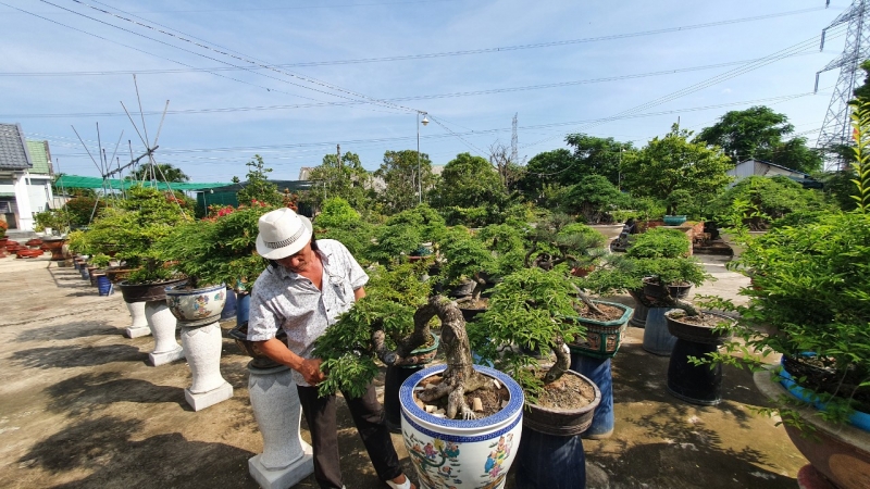 Le jardin de monsieur Nam compte plus de 200 pots de bonsaï de différentes variétés. Photo: VOV |