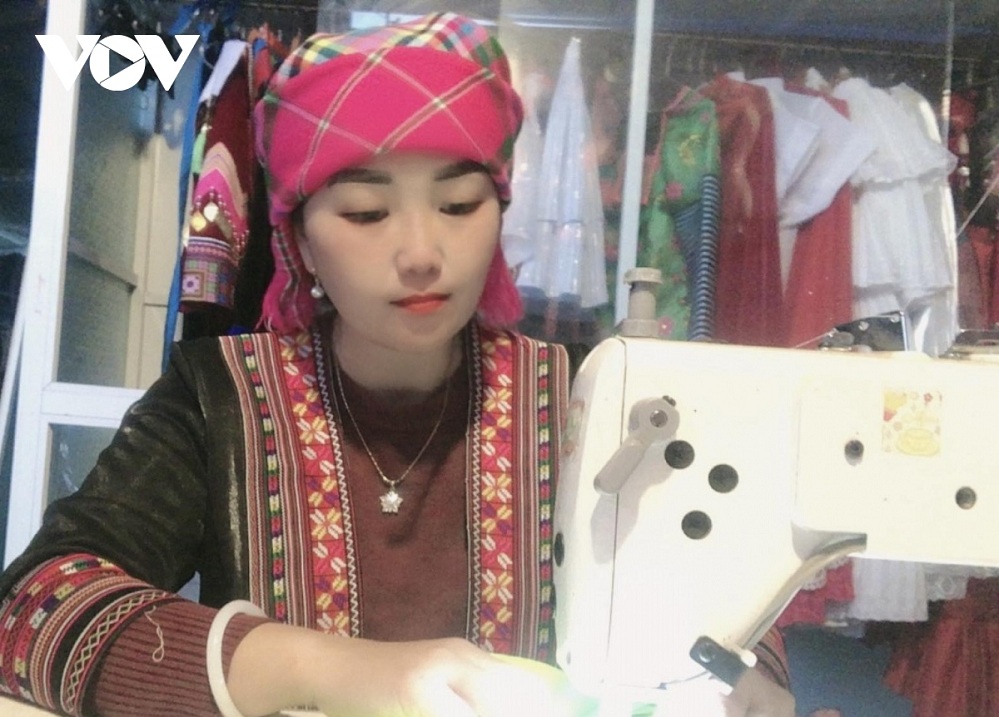 Bénéficiant de ses expériences, Thào Thi Dê apporte son soutien à d'autres femmes de son village et de sa commune pour la fabrication des costumes traditionnels, entre deux périodes de récolte, afin d'arrondir les fins de mois. Sùng Thi Mai est l'une de ces femmes: