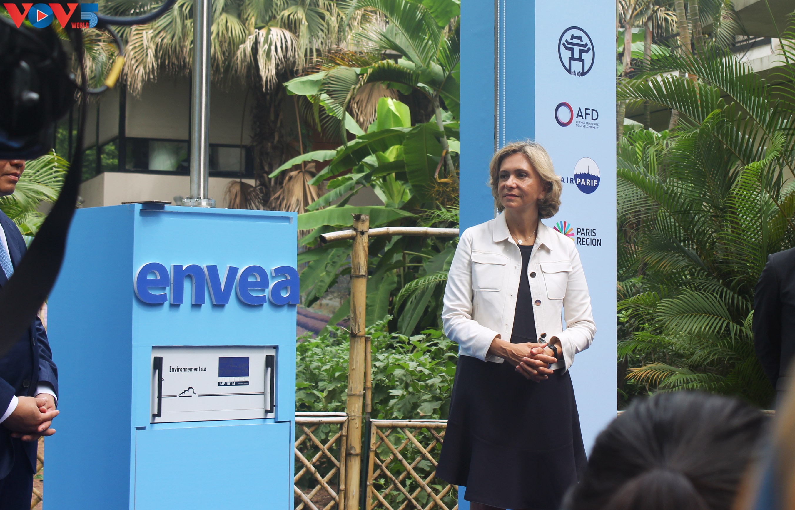 Valérie Pécresse lors de l’inaguration d’une nouvelle station de mesure de la qualité de l’air positionnée dans le parc de l’ambassade de France à Hanoi. Photo: Duc Quy/VOV |