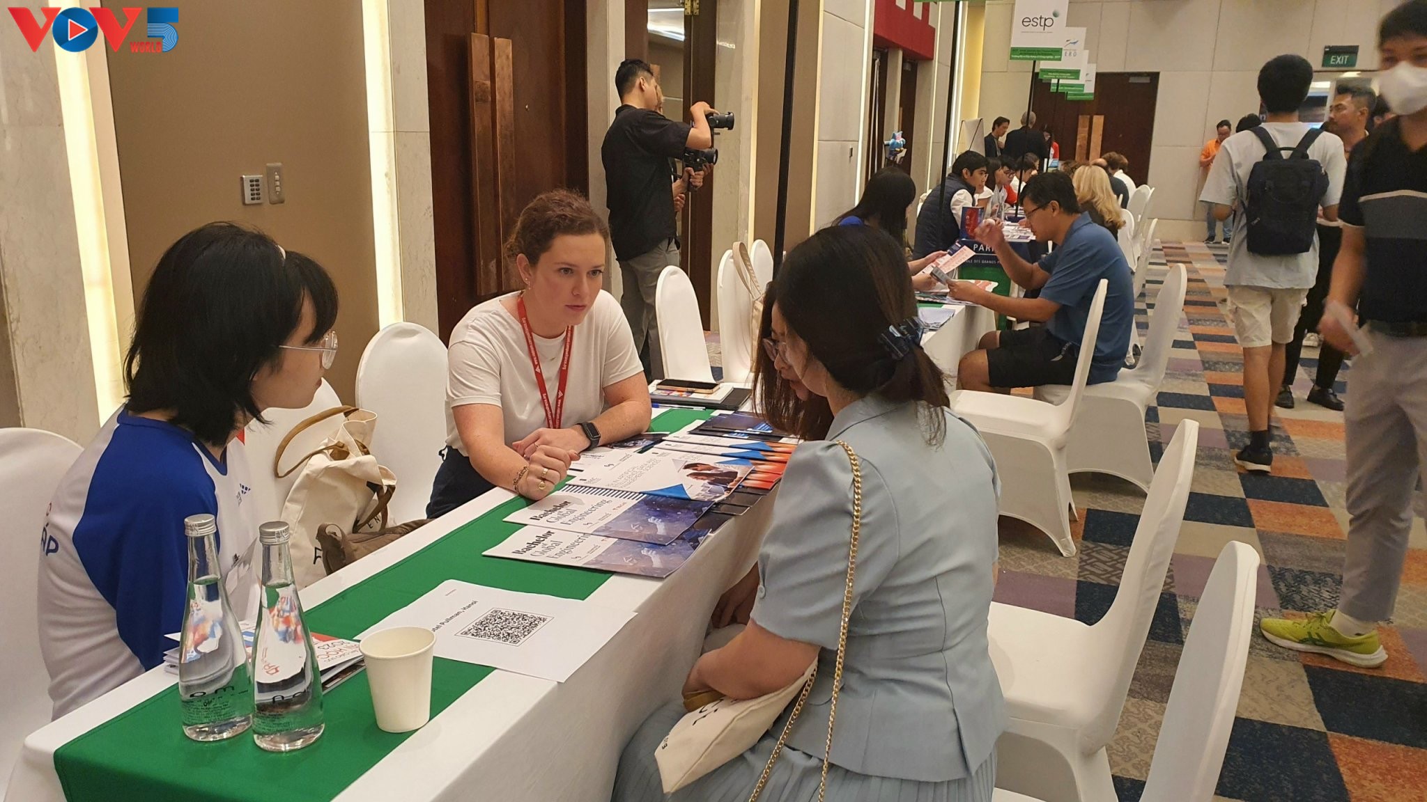 Ce salon a attiré non seulement de jeunes Hanoïens, mais aussi des lycéens venus d’autres provinces, dont Nguyên Phuong Anh et Đông Thi Bao Linh, du lycée d’élite Nguyên Trai, de la province de Hai Duong.