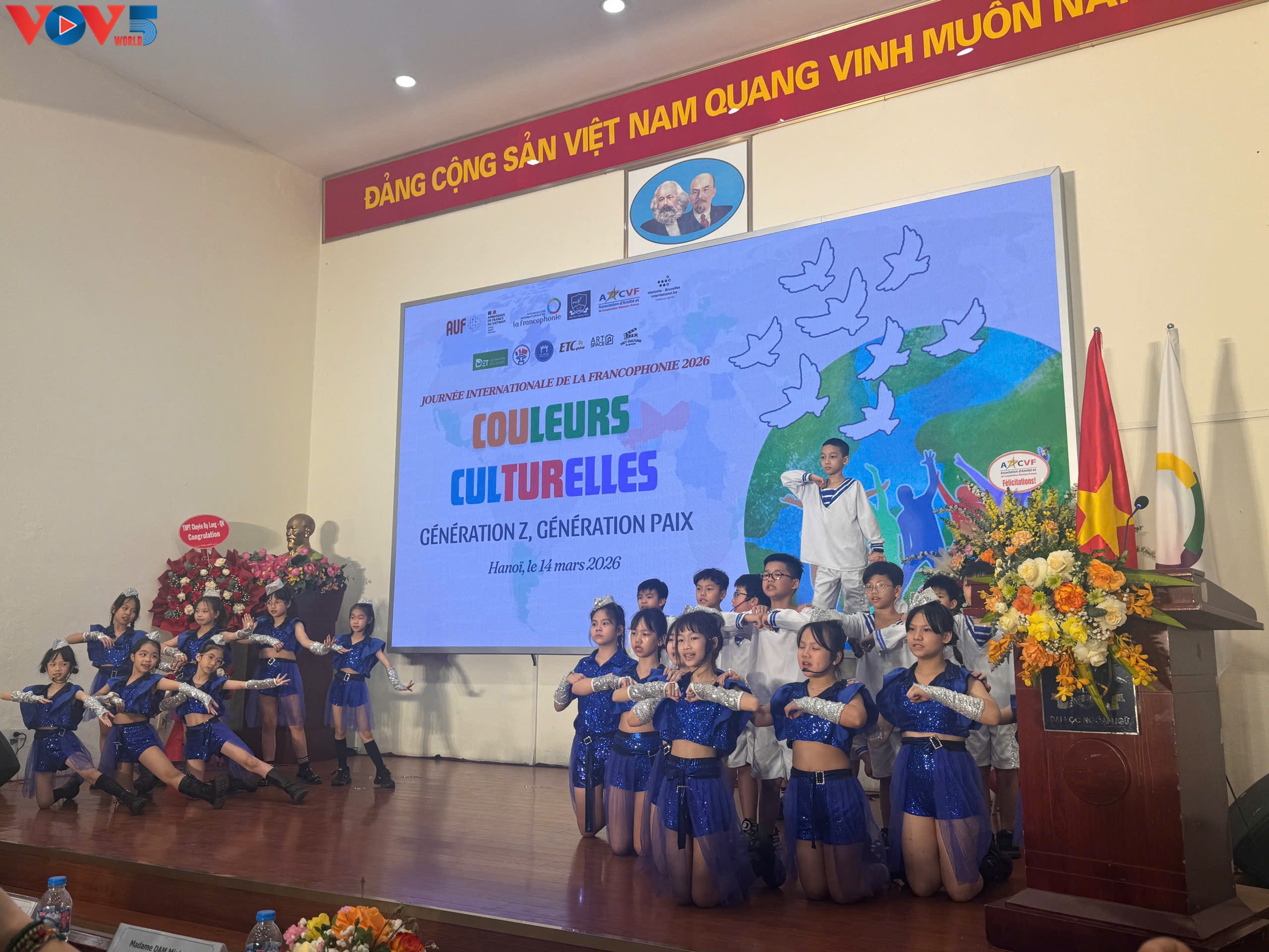 Dès le matin, l’amphithéâtre Vu Dinh Liên s’est animé avec la cérémonie officielle d’ouverture. Étudiants, enseignants, représentants d’ambassades et institutions francophones se sont réunis pour célébrer la diversité et la vitalité de la langue française. Placée sous le thème «Génération Z, génération paix? Contribution de la jeunesse pour un monde plus apaisé», cette journée constitue non seulement un moment de rencontre et de partage, mais aussi une occasion pour les jeunes francophones de faire valoir leur créativité et leur engagement en tant que bâtisseurs de paix et de développement.