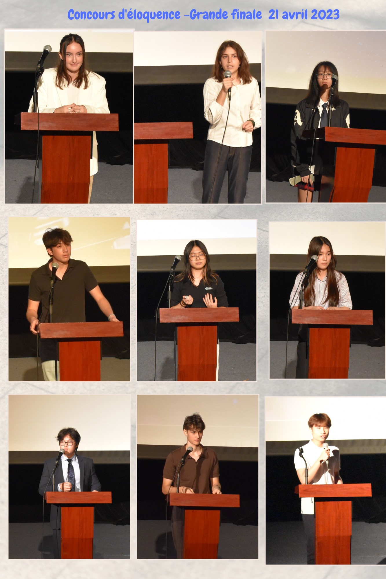 La finale du concours d’éloquence s’est clôturée par de longs applaudissements et le bonheur de tous. L’art oratoire est valorisé et continuera être honoré au quotidien au lycée Alexandre Yersin. La troisième édition est d’ores et déjà très attendue!