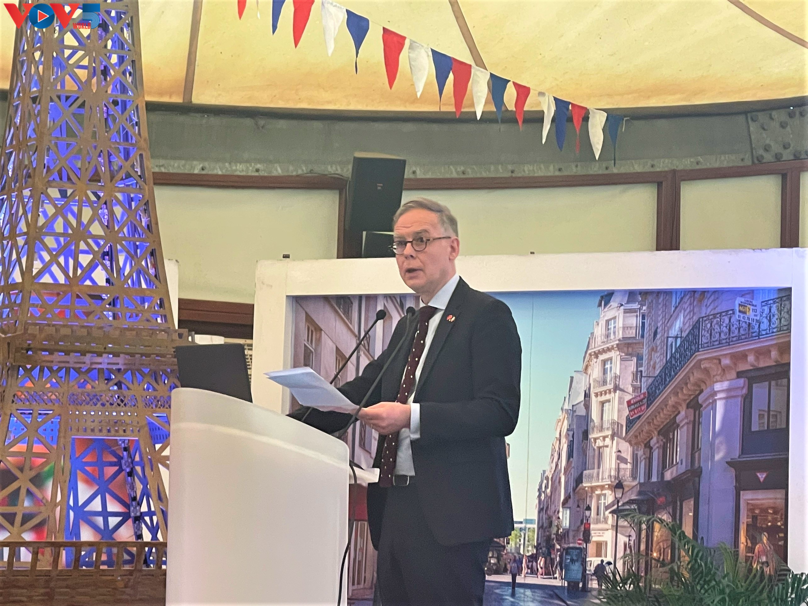 Nicolas Warnery, ambassadeur de France au Vietnam (au micro). Photo: Thuy Linh/VOV5 |