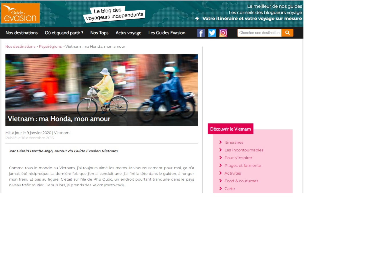 Capture d'écran d'un article de Gérald-Berche Ngô sur le site de Guide Évasion |