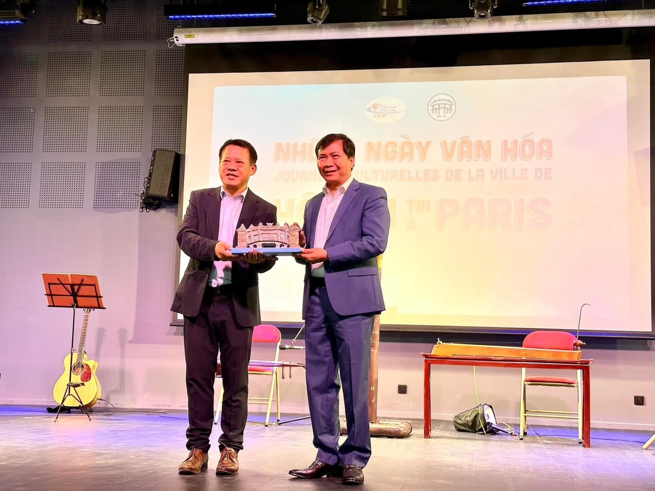 Nghiêm Xuân Đông, le directeur du Centre culturel du Vietnam en France (gauche) et Nguyên Van Son, président du Comité populaire de la ville de Hôi An. |