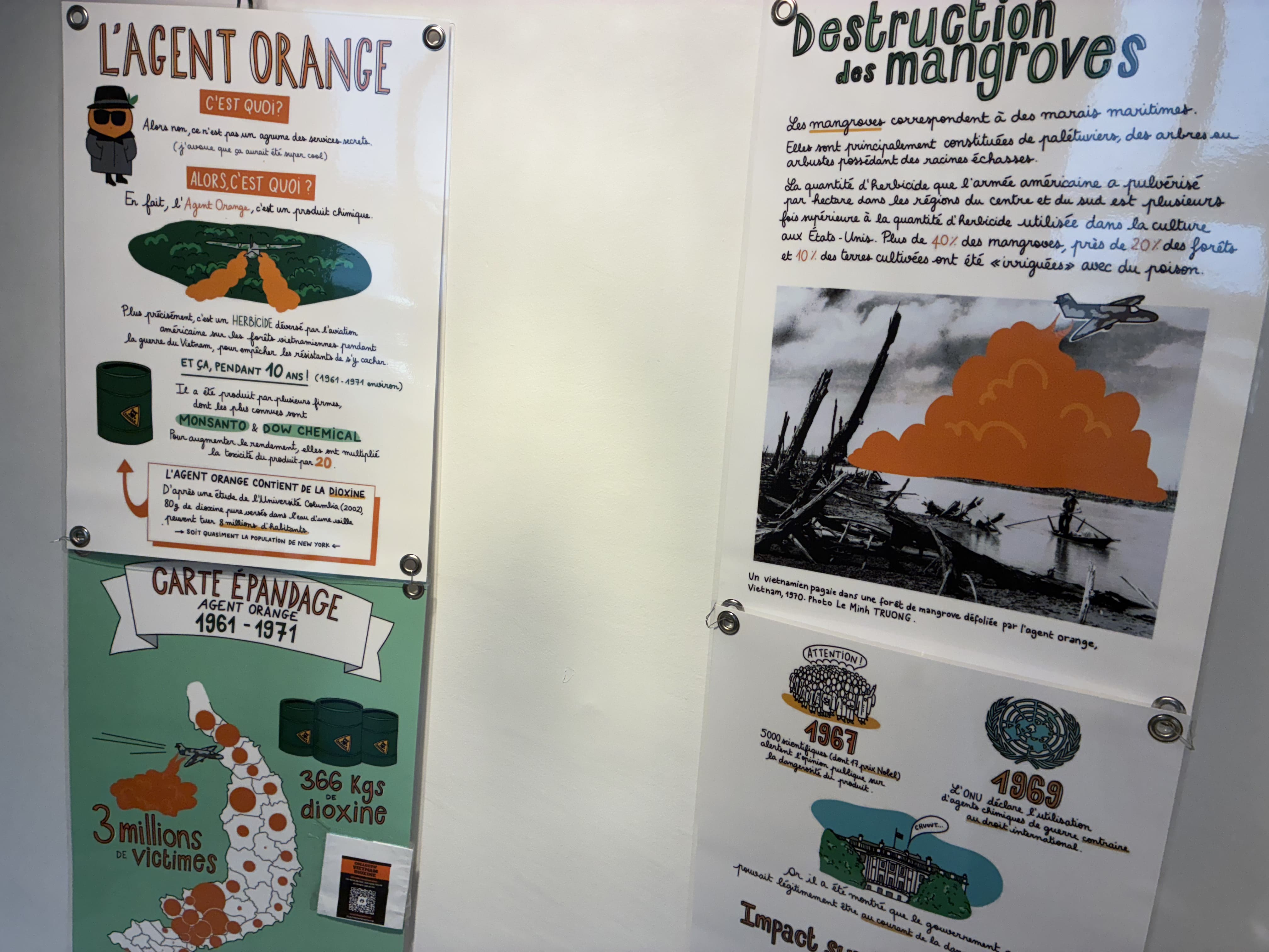 Des affiches sur les séquelles de l'agent orange. Photo: Guillaume Marchal |