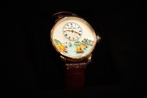 La montre-bracelet "Ha Long Bay I" de l’entreprise horlogère suisse Jaquet Droz, le 29 octobre à Hanoï (photo: CVN) |