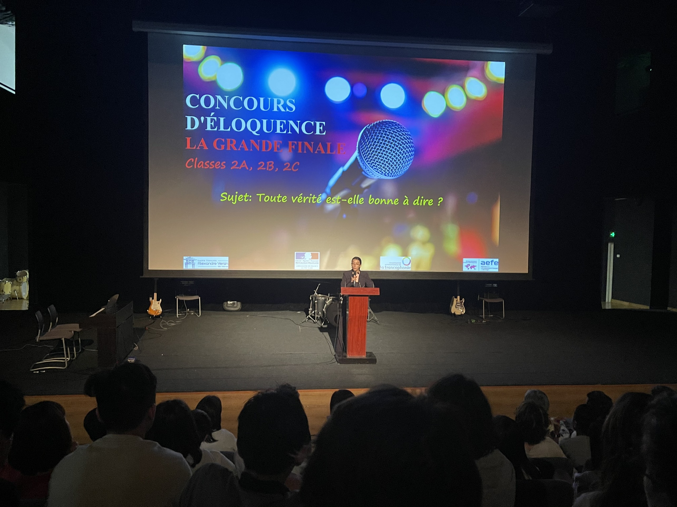 Il est 9 heures. L’auditorium du lycée est archi-bondé. Tous les élèves sont venus soutenir leurs camarades dans une ambiance potache, certes, mais tout de même un peu fiévreuse... La petite vidéo qui est diffusée en guise de message d’encouragement aux candidats ne fait qu’accroître la tension. Les finalistes, eux, sont prêts à en découdre et c’est à qui aura le dernier mot...