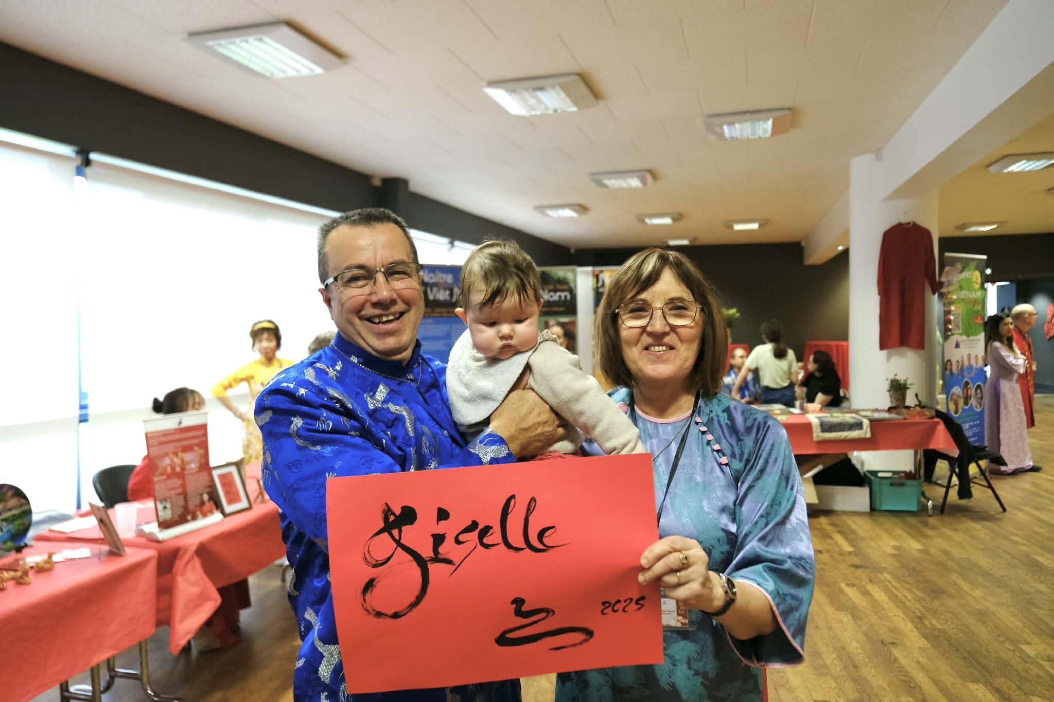 En plus des performances scéniques, la fête s’est déployée dans tout l’espace du Palais des Congrès. Devant le stand de calligraphie, les pinceaux ont glissé sur le papier rouge sous les regards curieux. Beaucoup ont écrit leur prénom en vietnamien pour la première fois, découvrant la signification des vœux traditionnels du Nouvel An.