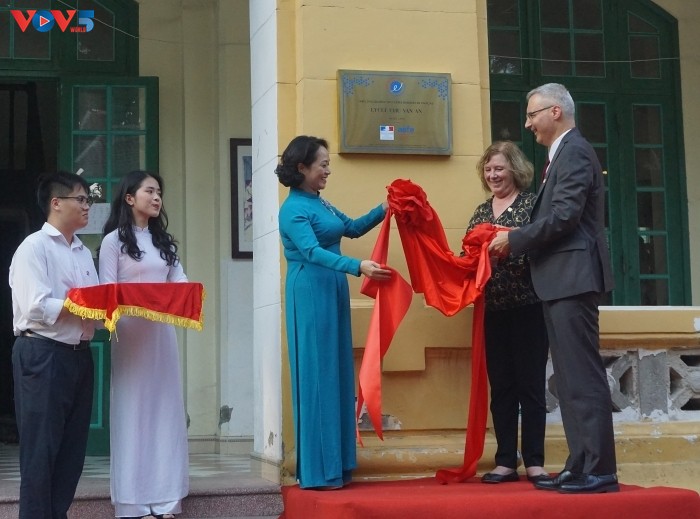 La plaque «FrancEducation» a été dévoilée par Lê Mai Anh, la proviseure du lycée Chu Van An, et par Nicolas Warnery, le nouvel ambassadeur de France au Vietnam, qui était accompagné pour la circonstance par Catherine Deroche, présidente du groupe des sénateurs d’amitié France-Vietnam.