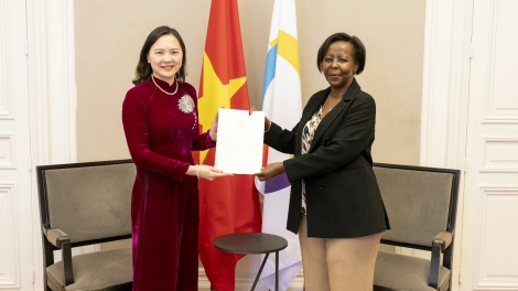 (VOVWORLD) - Nguyên Thi Vân Anh a présenté, ce jeudi à Paris, ses lettres de créance à la secrétaire générale de l’Organisation Internationale de la Francophonie, Louise Mushikiwabo, devenant ainsi officiellement la Représentante permanente du Vietnam auprès de la Francophonie.