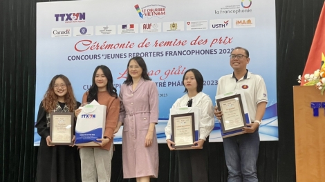 (VOVWORLD) - Ce vendredi 17 novembre, au siège du Courrier du Vietnam, a eu lieu la traditionnelle cérémonie de remise des prix du concours d’écriture journalistique «Jeunes Reporters Francophones», édition 2023. Des représentants de la Représentation régionale de l'OIF pour l’Asie-Pacifique (REPAP), de l’Agence Universitaire de la Francophonie, des ambassades du Maroc, de la France, de la Roumanie, de la Suisse, du Canada, du Groupe des ambassades, Délégations et Institutions francophones (GADIF) au Vietnam, de l’Institut français du Vietnam, étaient réunis pour congratuler les 20 finalistes mais aussi l’ensemble des participants, qui ont fait preuve d’un réel niveau de compétence linguistique et rédactionnel et plus généralement d’un véritable engouement pour la langue de Molière.